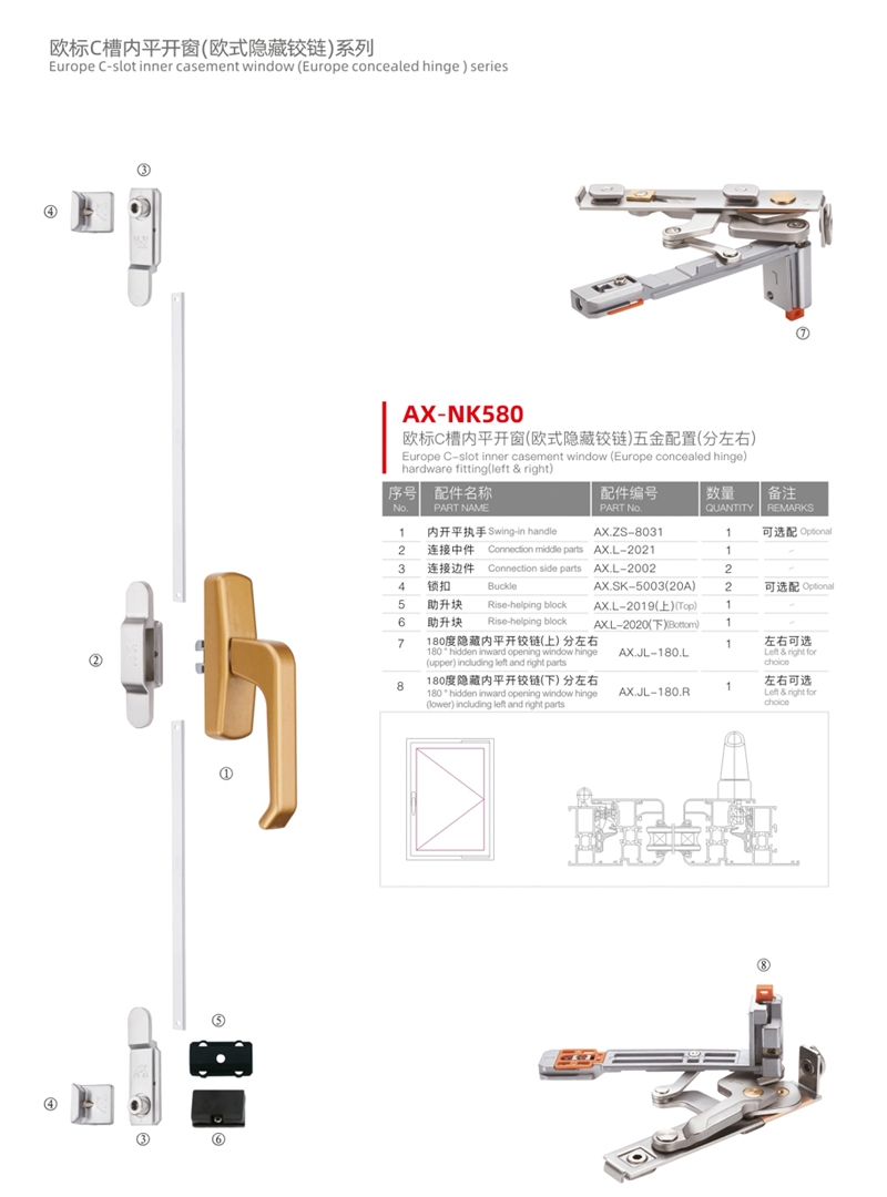欧标槽内平开窗(内开内倒) --- AX-NK580