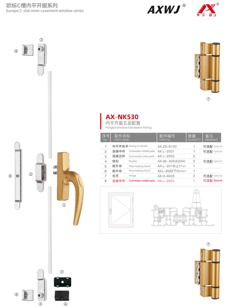 欧标槽内平开窗(内开内倒) --- AX-NK530